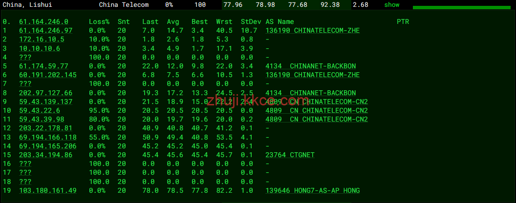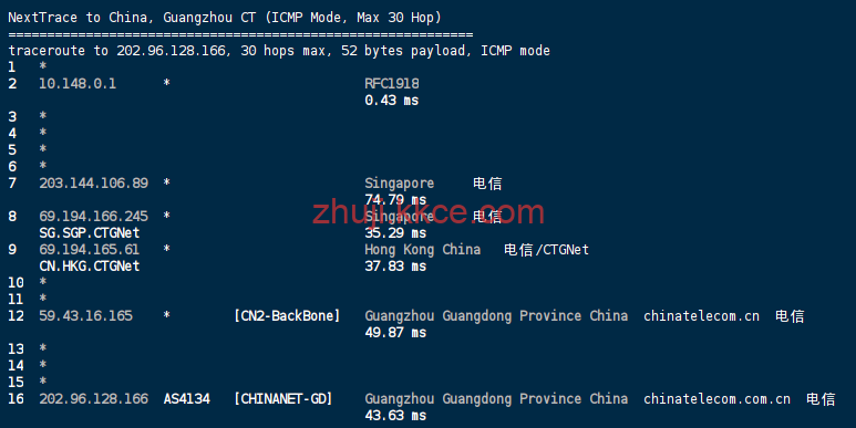 中国电信:经由中国电信骨干网,通过 CN2 (AS4809) 高速链路直连新加坡。