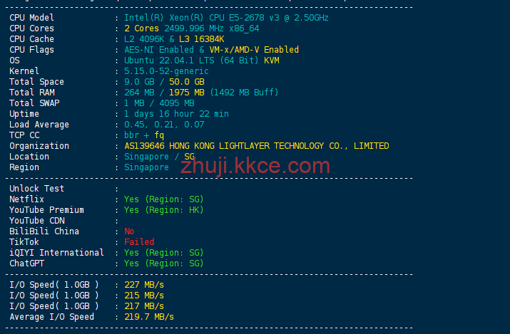 Lightlayer 提供的新加坡 VPS 针对东南亚及周边网络进行了深度优化,下单时支持根据需求自定义 CPU、内存、硬盘、IP 数量、带宽及快照等资源。目前 Lightlayer 已在新加坡、洛杉矶、台北、马尼拉、东京等地部署,提供包括云计算、云存储等相关解决方案。Lightlayer 现推出的轻量级云产品,具备轻巧灵活、成本可控等优点,同时提供高配置物理机以满足大带宽、高存储需求,是寻求高性价比、自主配置业务出海的理想选择。lightlayer现推出轻量级云产品,具备云轻巧灵活,成本可控等优点,另外还有高配置物理机能满足客户大带宽、高存储等需求,简单测试下新加坡VPS,方便大家参考。
