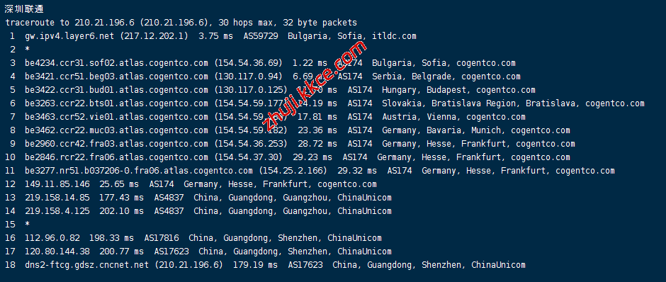 联通回程:走cogentco转德国法兰克福回国