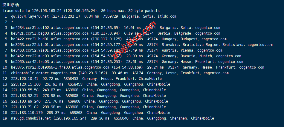 移动回程:走cogentco转德国法兰克福回国
