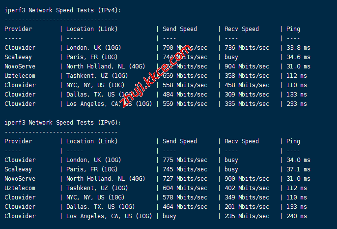 iperf3测试欧美节点的数据:
