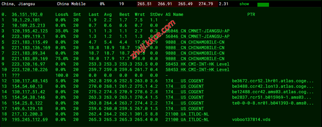 移动去程:直连移动香港节点对接COGENT转ITLDC去机房