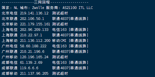 网络方面,去程电信绕道挪威,联通直连荷兰,移动绕道美国;