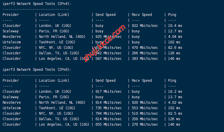 VPS部分性能测试结果: