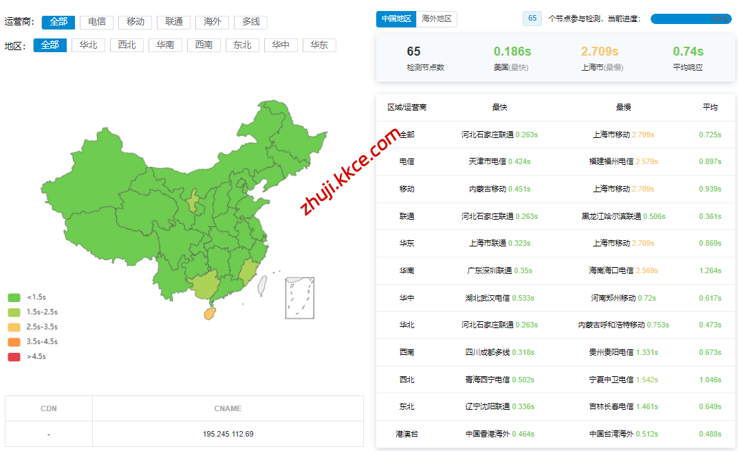 国内三网多节点的延迟数据: