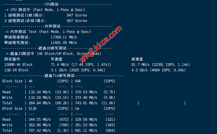 VPS部分性能测试结果: