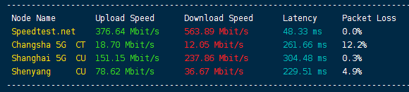 Speedtest国内多节点测试上下行速度: