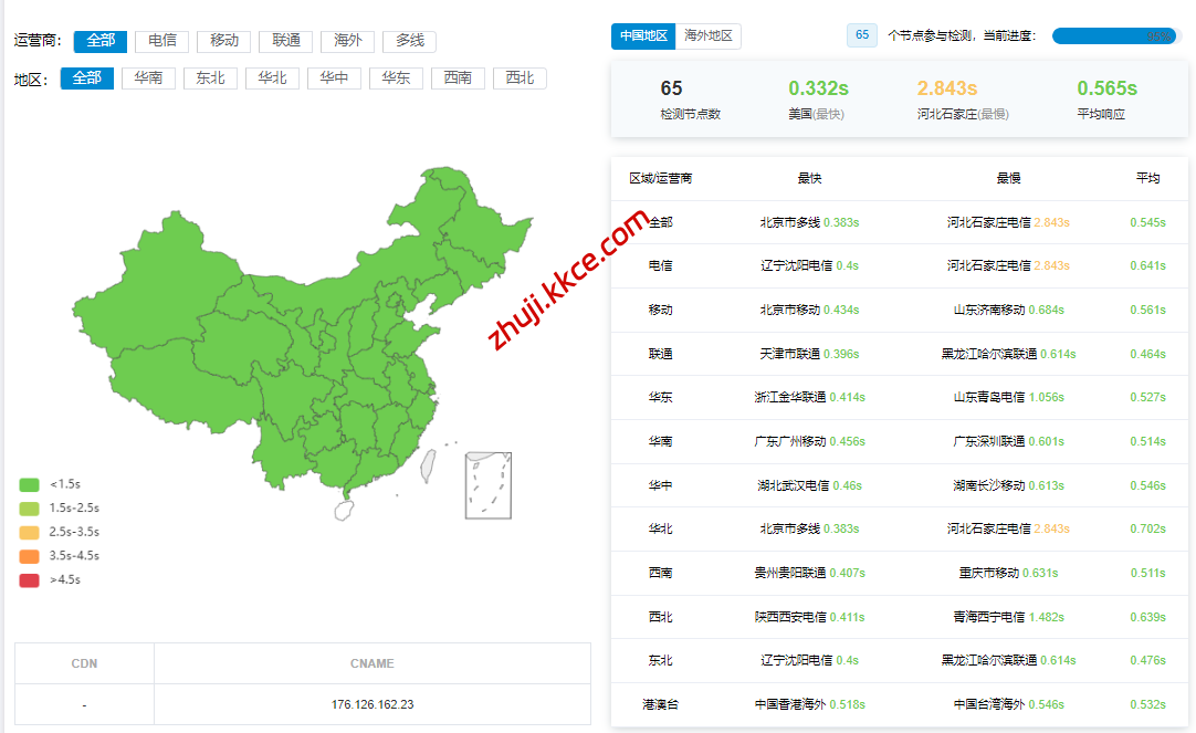 国内三网多节点的延迟数据: