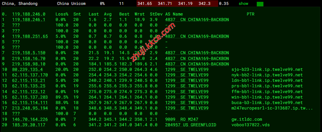联通去程:骨干网对接TWELVE99转M247到机房