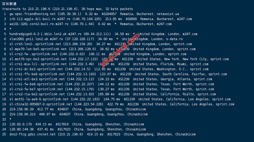 联通回程::走netassist转m247去英国对接sprint再到美国然后再回国