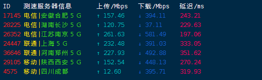 Speedtest国内多节点测试上下行速度: