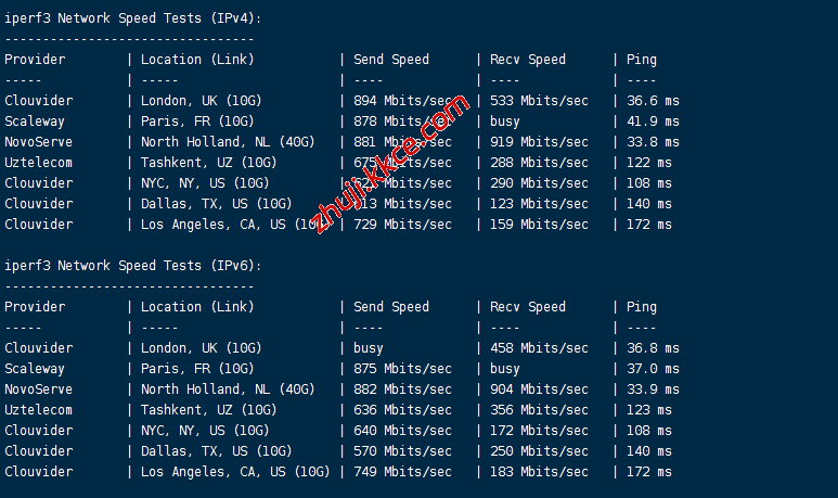 VPS部分性能测试结果:
