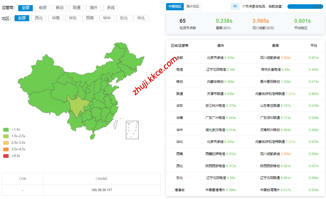 国内三网多节点的延迟数据: