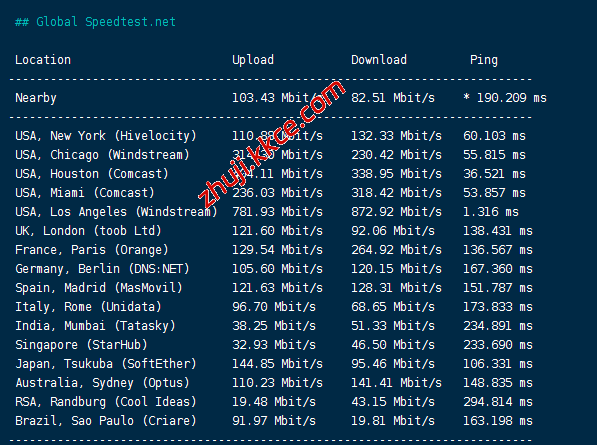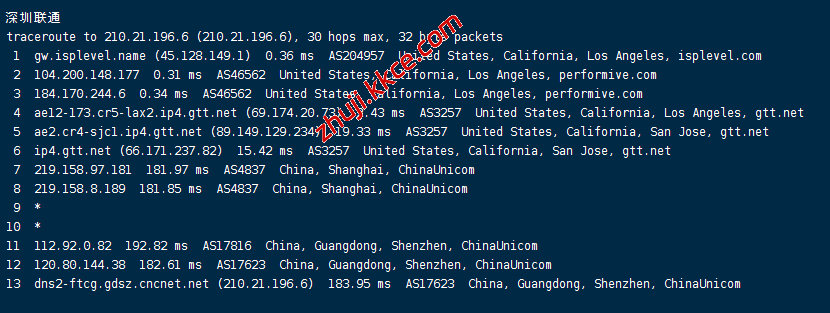 网络方面,去程电信联通都是直连美国,移动需要绕道香港再去美国;