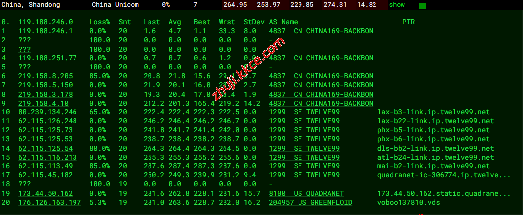 联通去程:骨干网对接TWELVE99然后转QUADRANET去机房