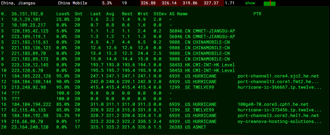 移动回程:走retn转德国法兰克福移动节点回国