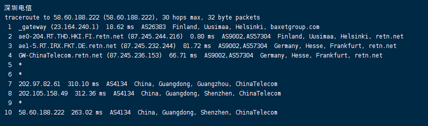 电信回程:走retn转德国法兰克福回国