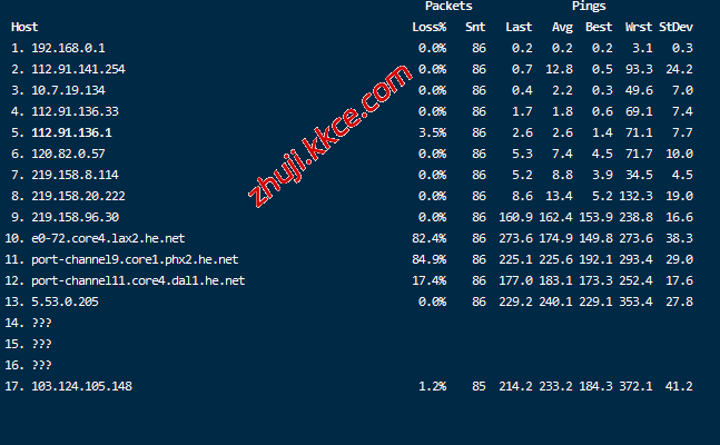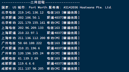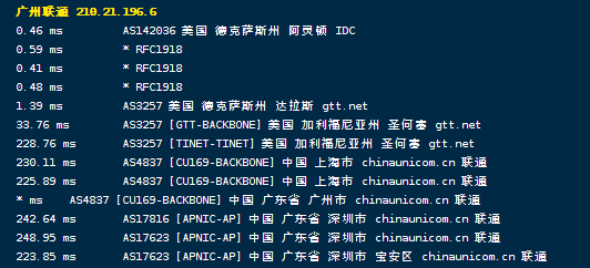 联通去程:直连联通洛杉矶节点,然后接HE.NET去达拉斯机房