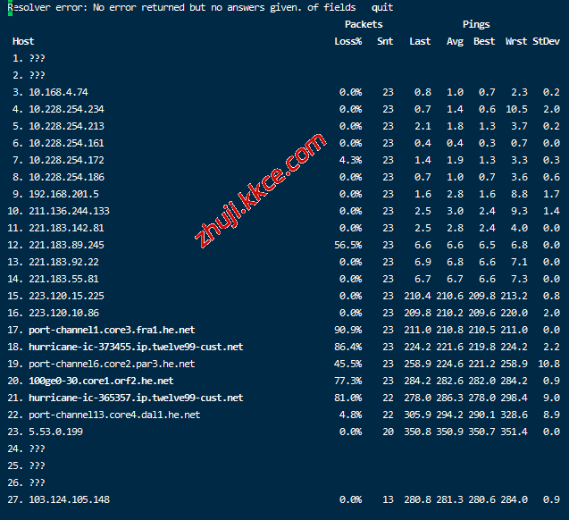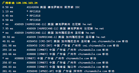移动去程:直连移动圣何塞节点,然后走HE.NET去达拉斯机房