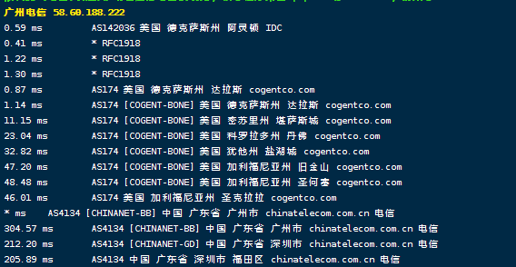 电信去程:直连电信圣何塞节点,然后转HE.NET去达拉斯机房
