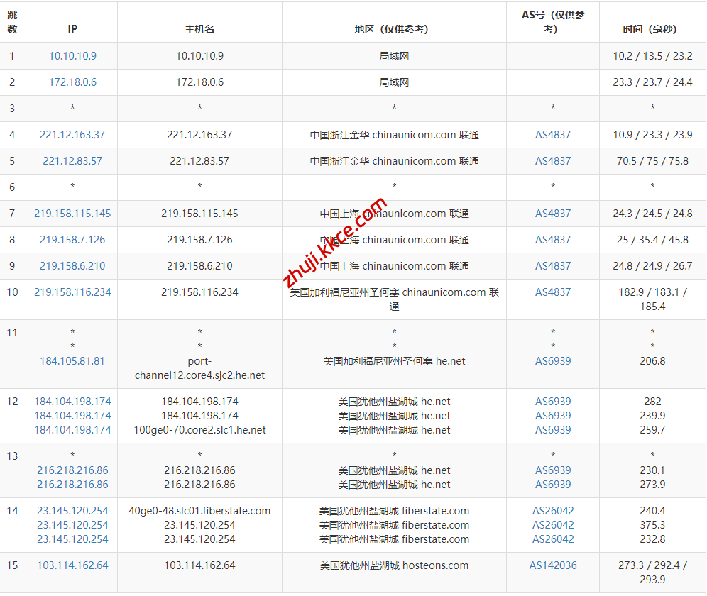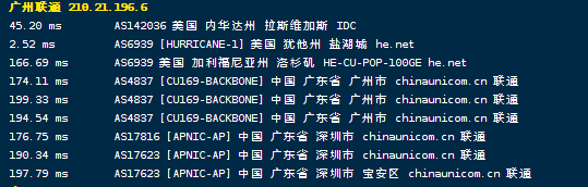 联通去程:直连联通圣何塞节点后走he.net接fiberstate去机房