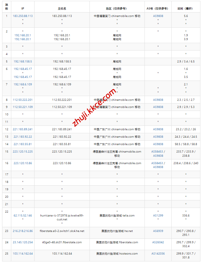 移动去程:走德国法兰克福移动节点转he.net接fiberstate去机房