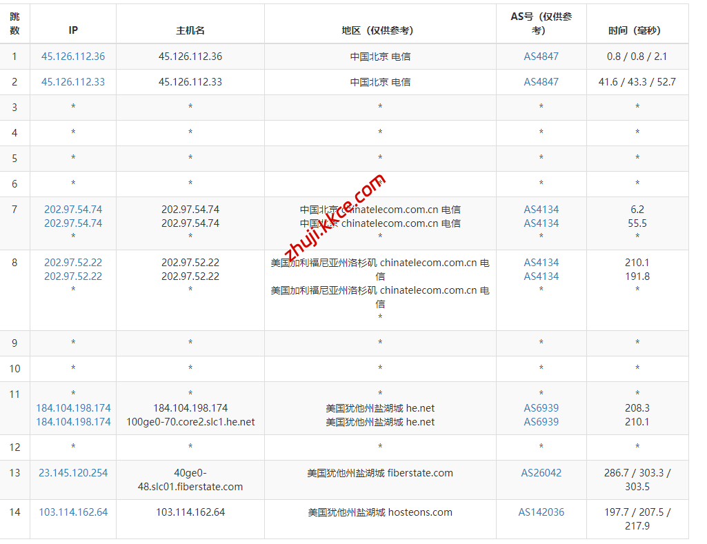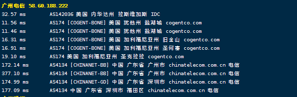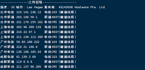网络方面,三网回程基本上不是直接从运营商自己在西海岸的pop回来就是从与其他运营商的peer直连回来,整体来看网络路由优化得还是相当不错的。