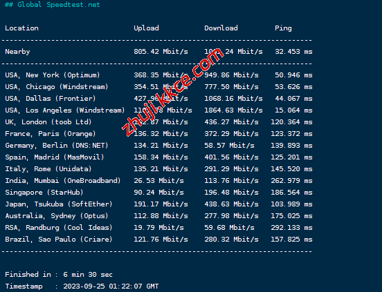 speedtest的部分国际节点的测试效果: