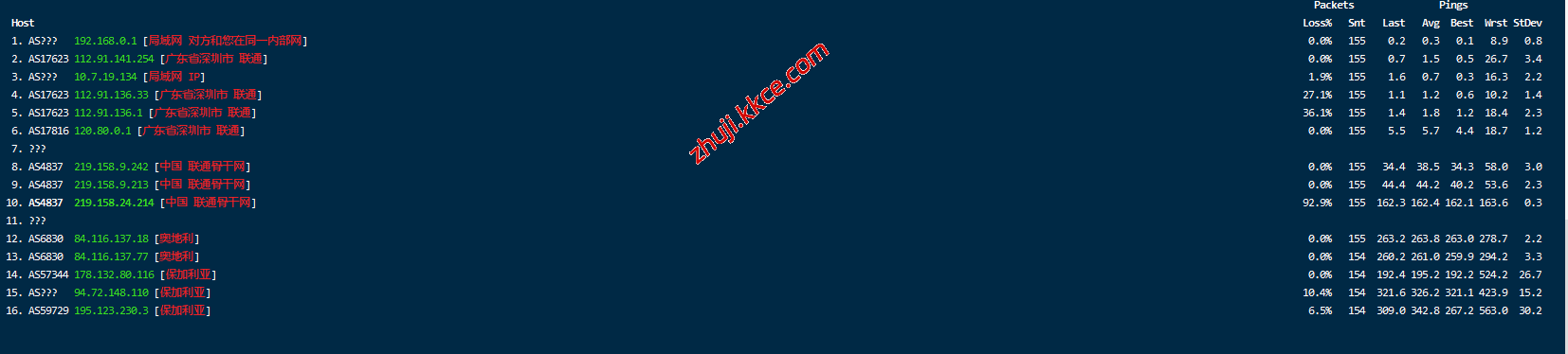 联通去程,骨干网对接opentransit到奥地利然后去保加利亚