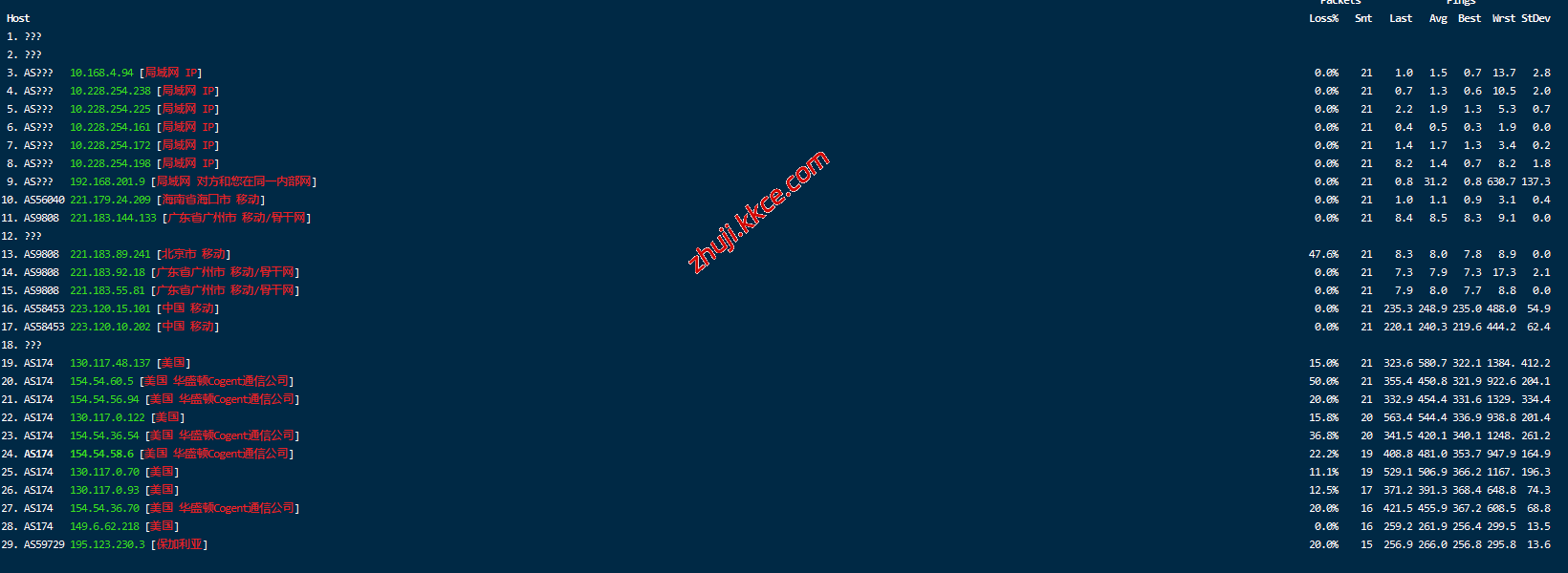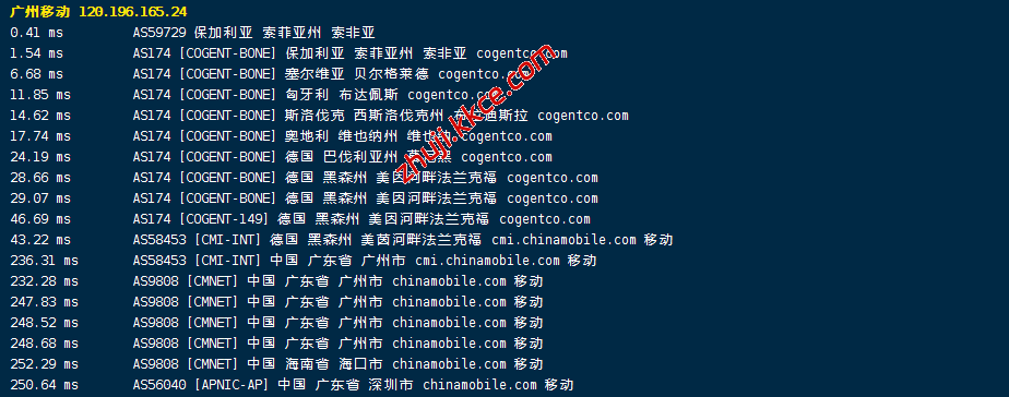 移动回程:走cogentco到德国法兰克福,然后从移动cmi节点直接回国