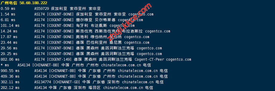 电信回程:走cogentco到德国法兰克福电信直接回国