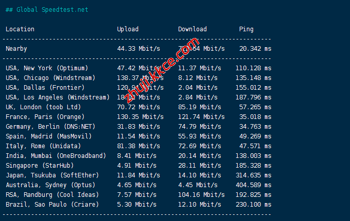 speedtest国际部分,大致看看数据: