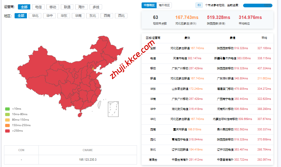 国内三网多节点延迟数据: