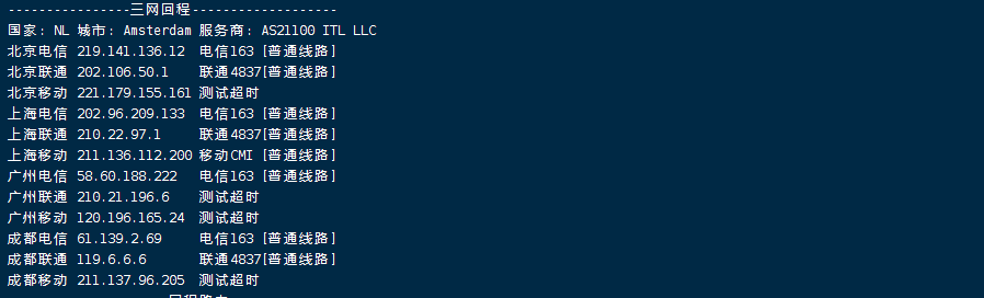 网络这块儿,只有移动的回程是相对直连的,但是考虑到移动在欧洲相对电信和联通的劣势,所以移动也不适合。如果不是做国际业务,要面向国内的话,那就放弃itldc的荷兰吧!