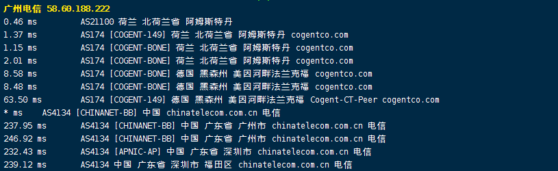 联通回程:走cogent从荷兰到德国然后出海对接联通回国