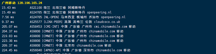 移动去程,直连移动英国伦敦节点然后接cogent经过英国去荷兰