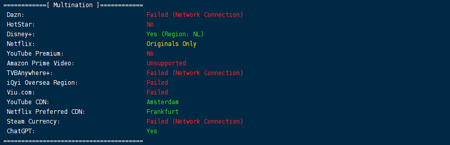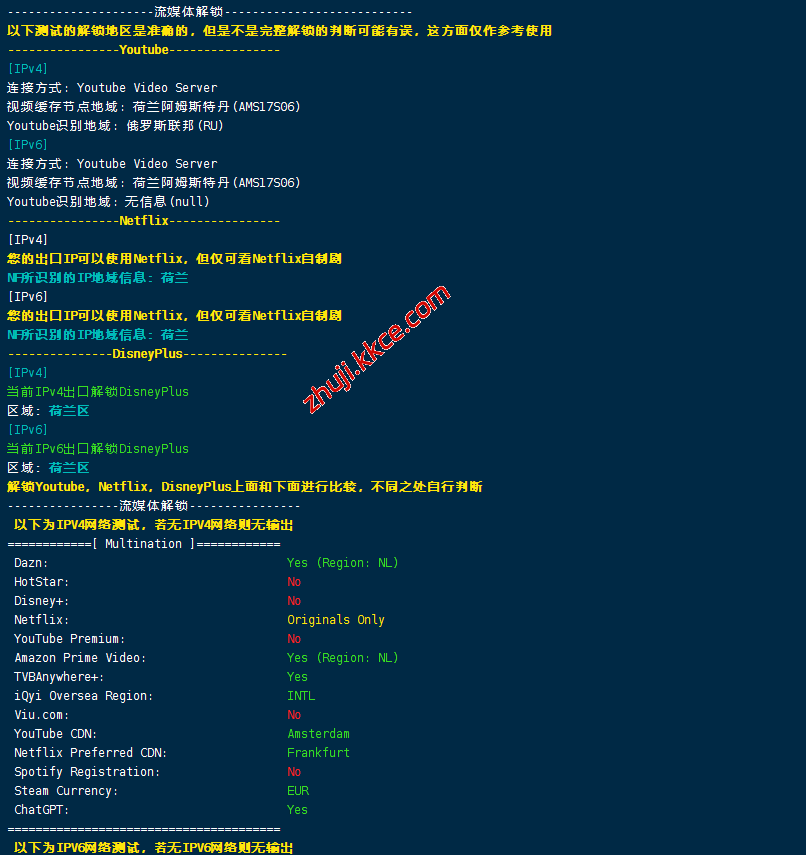 流媒体解锁测试结果: